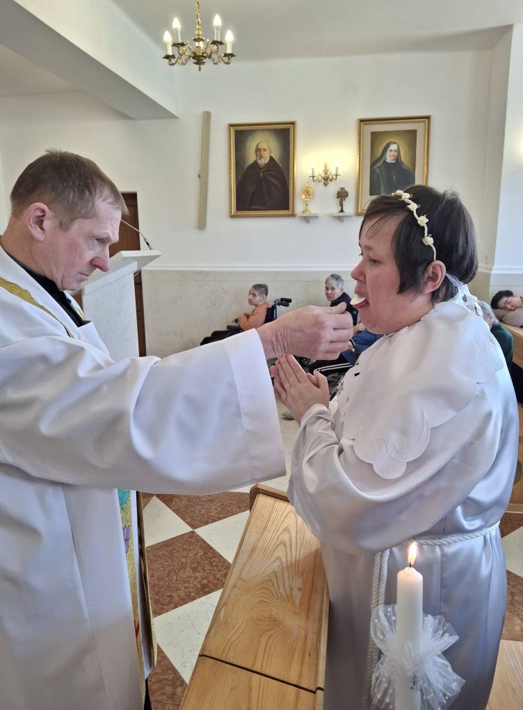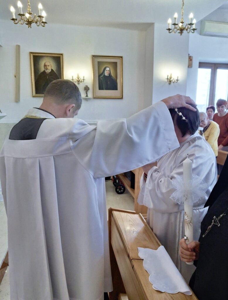 Z ogromną radością dzielimy się wyjątkową wiadomością – Basia, jedna z mieszkanek naszego Domu Pomocy Społecznej, po okresie przygotowań duchowych, przystąpiła do Sakramentu Chrztu Świętego oraz Pierwszej Komunii Świętej. To niezwykłe wydarzenie stało się piękną i poruszającą uroczystością dla całej naszej społeczności.